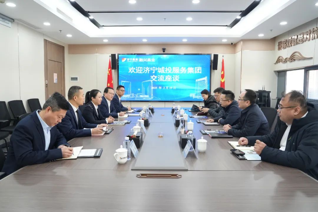 2月19日,济宁城投服务集团有限公司党总支书记、董事长伊文思,党总支副书记、工会主席张若昱率交流团队到访融兴商业,双方围绕聚焦现代服务业高质量发展,在业务协同、管理创新、市场拓展等领域展开深入探讨,融兴商业党支部书记、总经理朱亚梅及其他班子成员、相关部门负责人参加座谈。